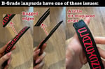 B-GRADE LANYARDS: Have little rugged edges or are not laying flat or have misaligned print. One of these.